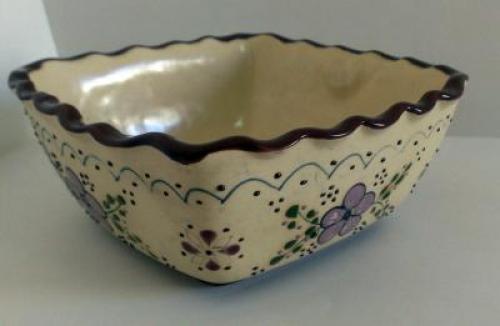 Tazon Cuadrado elaborado en ceramica en hornos de altas temperaturas. Diseno ornamental con flores.